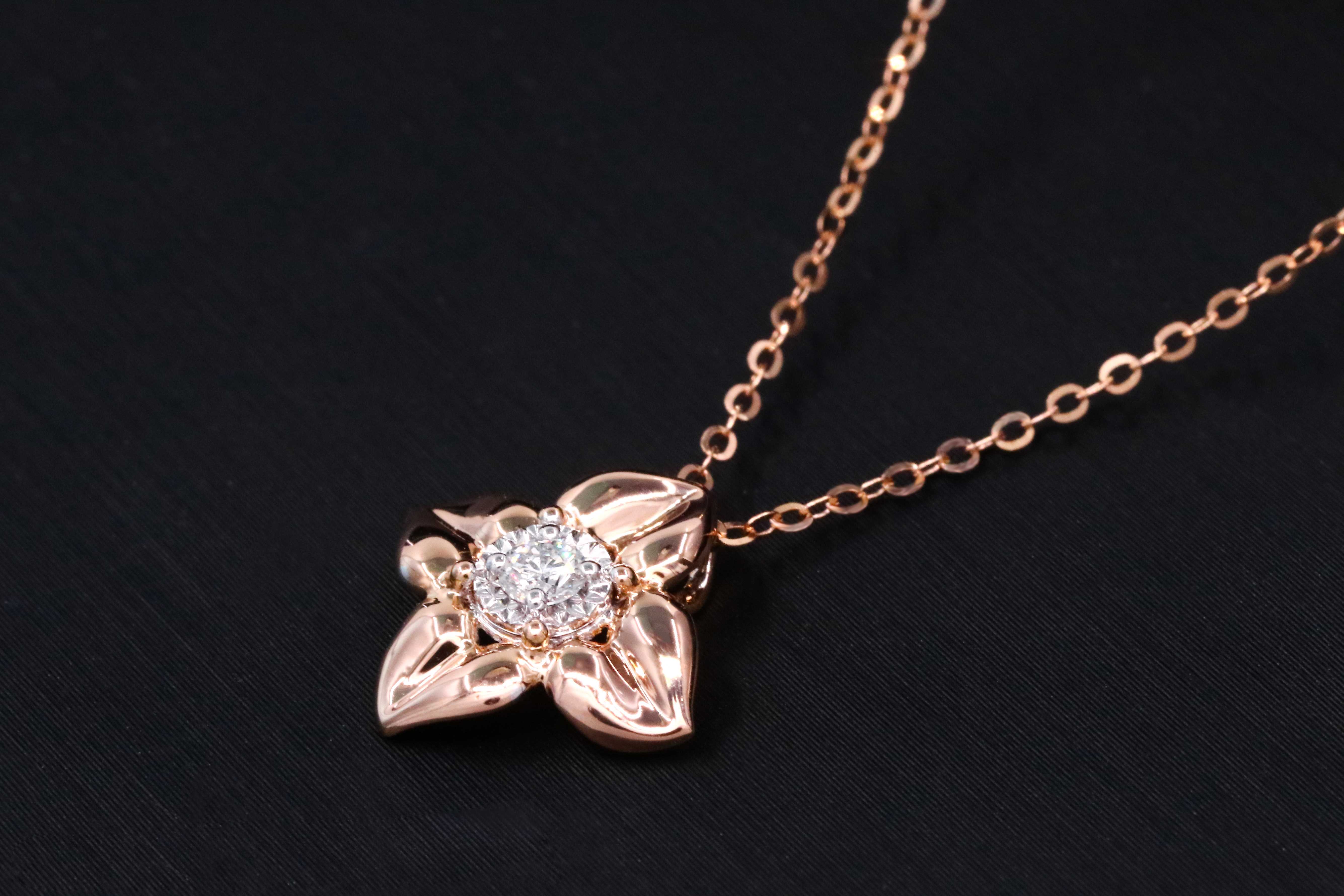 18K金钻石玫瑰金项链锁骨链